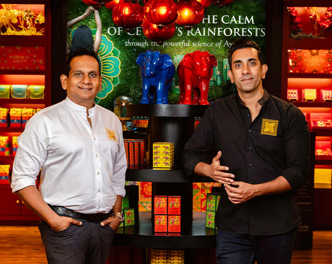 Spa Ceylon, mitgegründet von den Brüdern Shiwantha & Shalin, vermischt die 5.000 Jahre alte Lehre des Ayurveda mit Natur, modernem Design und sinnlicher Verwöhnung. Inspiriert durch ihre Mutter, eine Vorreiterin für Schönheit in Sri Lanka, ist ihre Mission simpel: dafür zu sorgen, dass Menschen sich von innen und außen gut fühlen.a